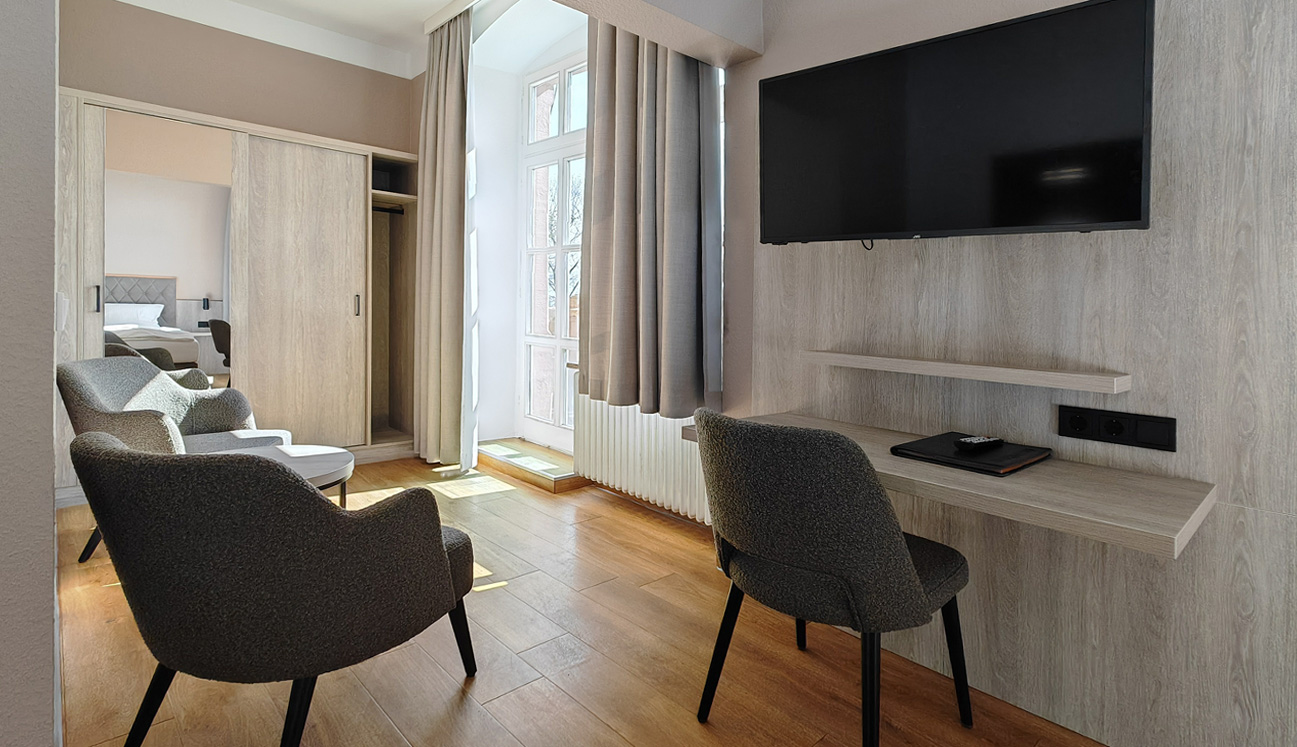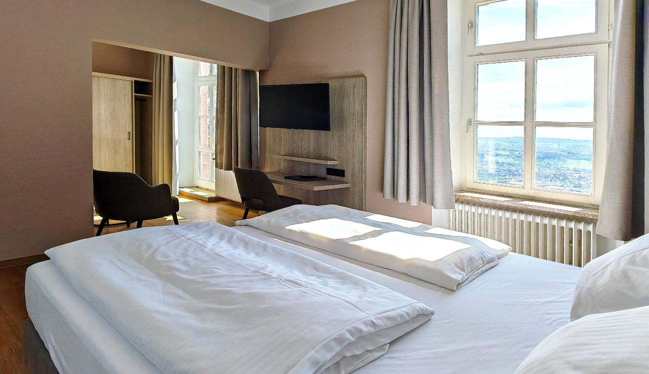 Genießen Sie unsere neu eingerichteten Zimmer der Kategorie 4. Die Gestaltung sticht durch ihre klaren Linien, der dezenten und warmen Farbgebung hervor.